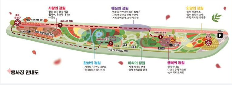 | 주요 이벤트 | 장미 퍼레이드, 황금 장미 이벤트, 야간 조명, 콘서트, 블랙이글스 에어쇼 |