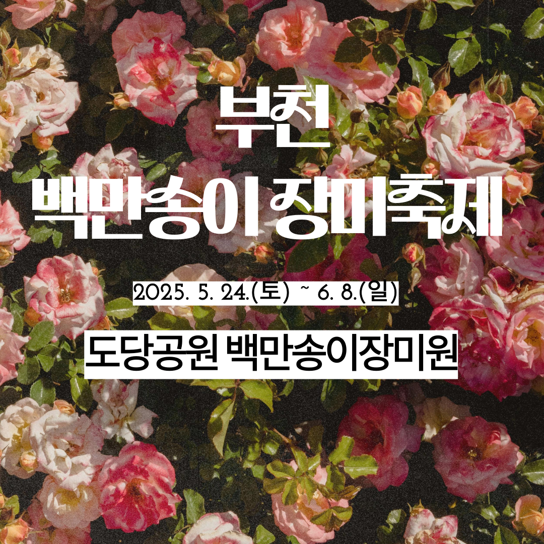 2025년 부천백만송이장미축제는 5월 24일(토)부터 6월 8일(일)까지 도당공원 내 장미원에서 열립니다.