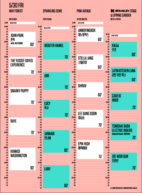 LANY, Kamasi Washington, Jacob Collier, 잔나비, 장범준 등