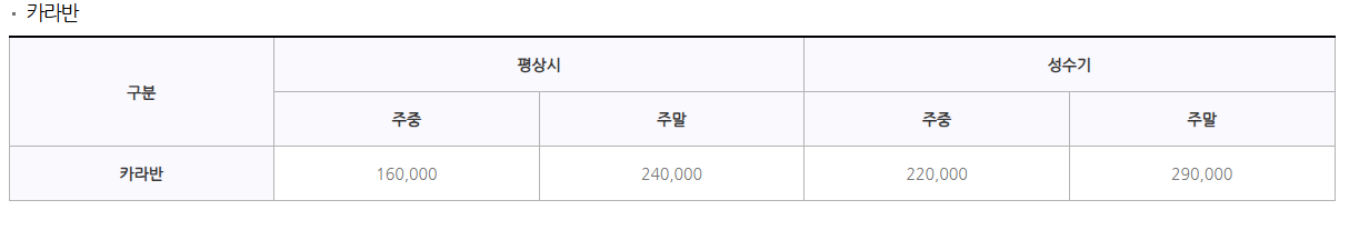 • 성수기(여름/가을) 최소 2~3주 전 예약 필수!