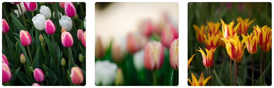 • 4월 26일 ~ 5월 6일 : 시든 튤립이 있더라도 여전히 튤립을 감상하기에 나쁘지 않음