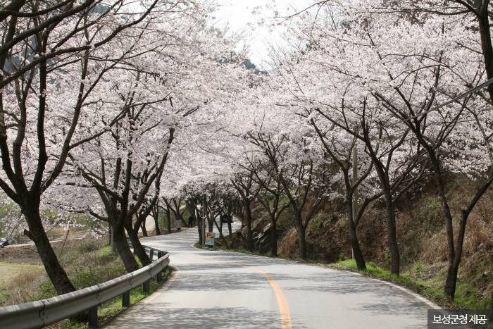 - 전남 보성의 고찰 대원사를 찾아가는 길은 눈이 호강하는 길이다. 진입로 4km에 벚꽃이 만개해 장관을 감상