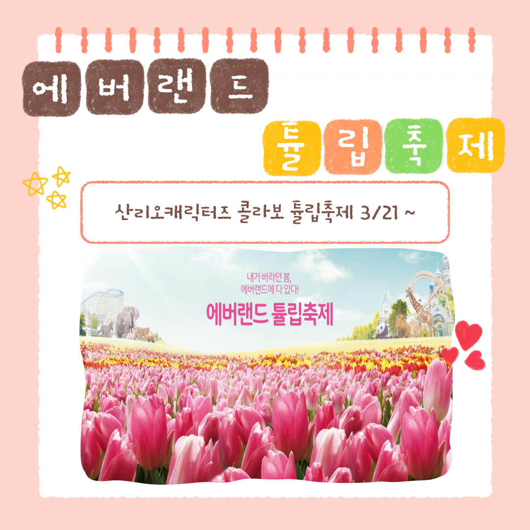2025년 봄, 에버랜드에서 펼쳐지는 '산리오캐릭터즈 콜라보 튤립축제'가 시작됐습니다. 🌷 올해는 더 많은 캐릭터와 더 확장된 포토존으로 돌아왔는데요. 매년 가던 에버랜드, 이번엔 진짜 색다릅니다. 지금 바로 확인하지 않으면 당신만 놓치게 될지도 모릅니다!