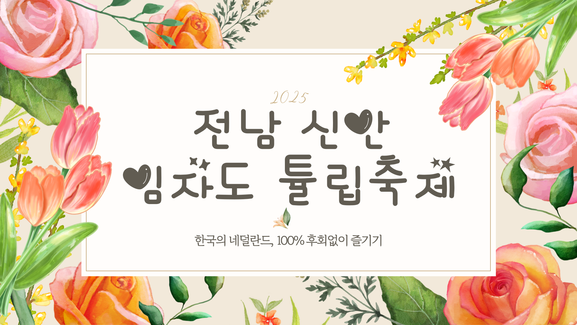 2025년 봄, 사랑하는 사람과 함께 형형색색의 튤립 물결 속을 걸어보세요. 신안 임자도는 당신의 봄을 꽃처럼 피워줄 준비가 되어 있습니다. 🌷