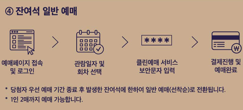 - 잔여석 예매마감 : 관람일 당일 10시