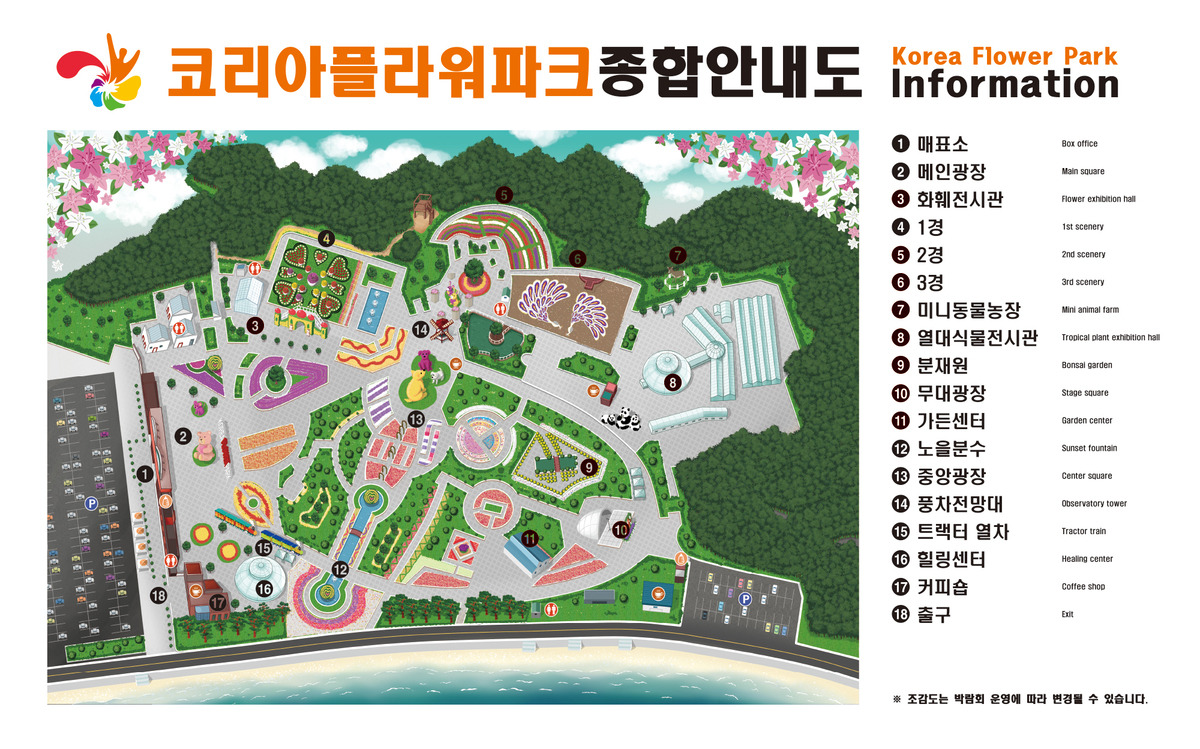 - 특징: 반려견 동반입장 가능(축제기간엔 주중에 입장), 억만 송이의 다채로운 꽃과 100만 구 이상의 튤립 수선화로 가득한 봄의 야외 정원