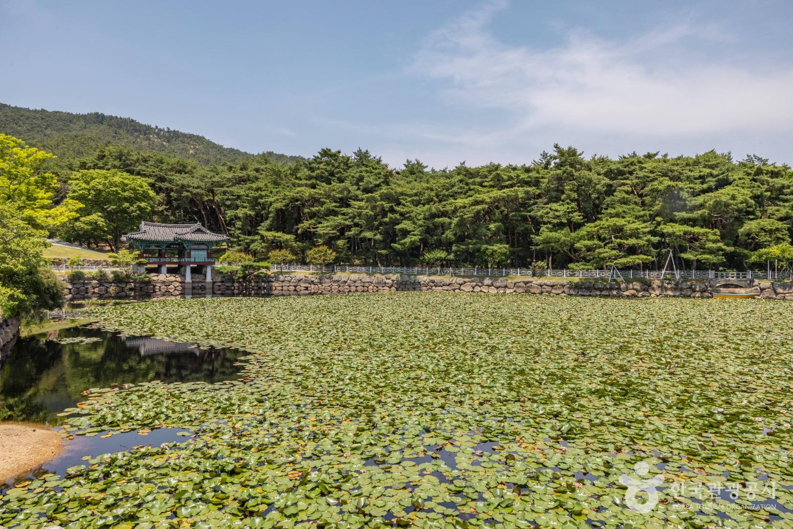 넓은 회랑과 연못, 여름이면 피어나는 수련꽃이 어우러져 풍경이 아름다우며, 인근 서출지의 연꽃과 이요당 풍경까지 더해