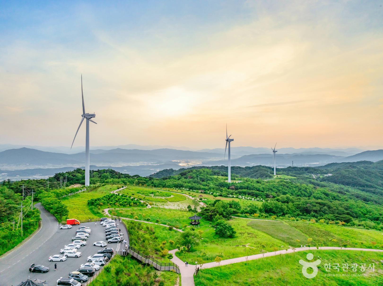 토함산 능선을 따라 설치된 거대한 풍력발전기와 토함산 수목경관숲이 함께하는 경주풍력발전은 여름 드라이브 명소로 제격입니다.