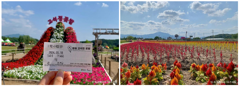 | 철원 고석정 꽃밭 | 2024.5.15 ~ 6.23 | 강원도 철원군 동송읍 | 장미, 유채, 버베나 등 | 성인 10,000원 / 청소년 4,000원 |